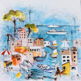 This unique and original contemporary artwork "Scène marine" on the subjects of Landscapes, Marine, Nature has been created by the contemporary artist Colombo Cécile.