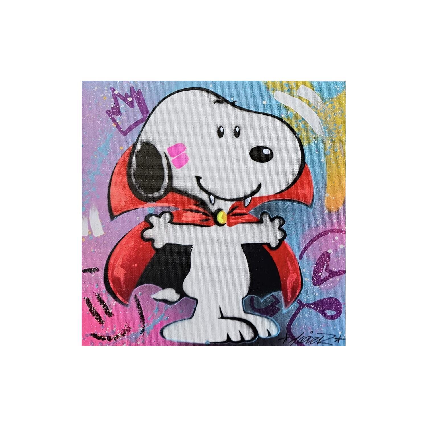 This unique and original contemporary artwork "Snoopy Drac" on the subject of Pop icons has been created by the contemporary artist Lemoine Mael.