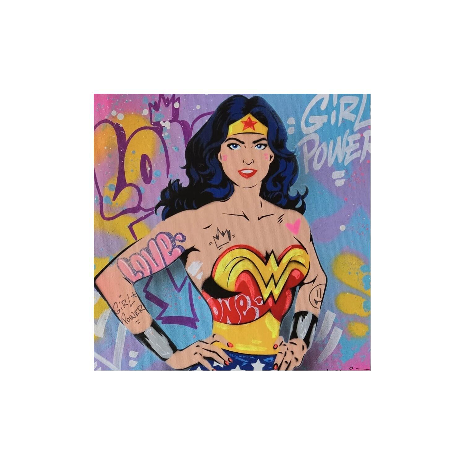 This unique and original contemporary artwork "Wonder Woman" on the subject of Pop icons has been created by the contemporary artist Lemoine Mael.