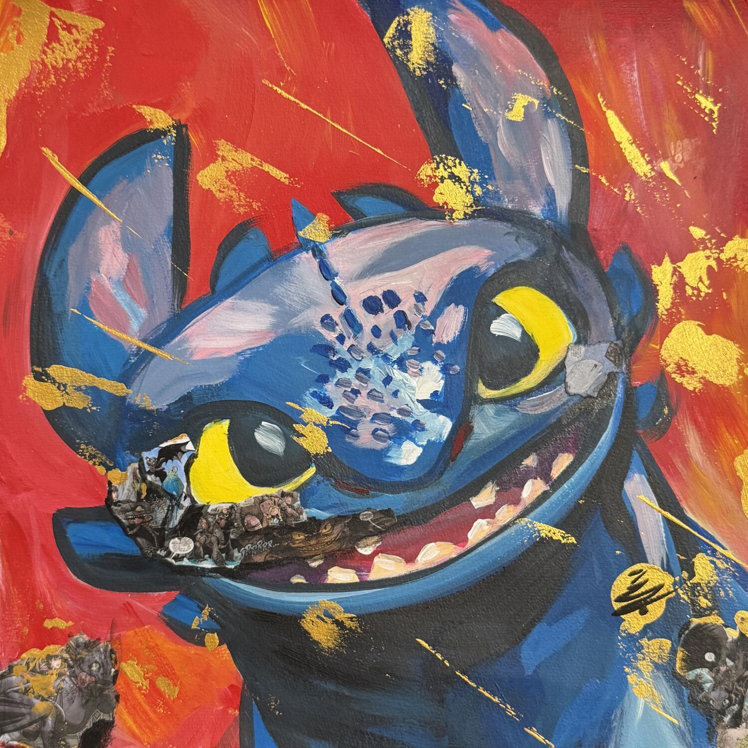 This unique and original contemporary artwork "Krokmou" on the subject of Pop icons has been created by the contemporary artist Caizergues Noël .