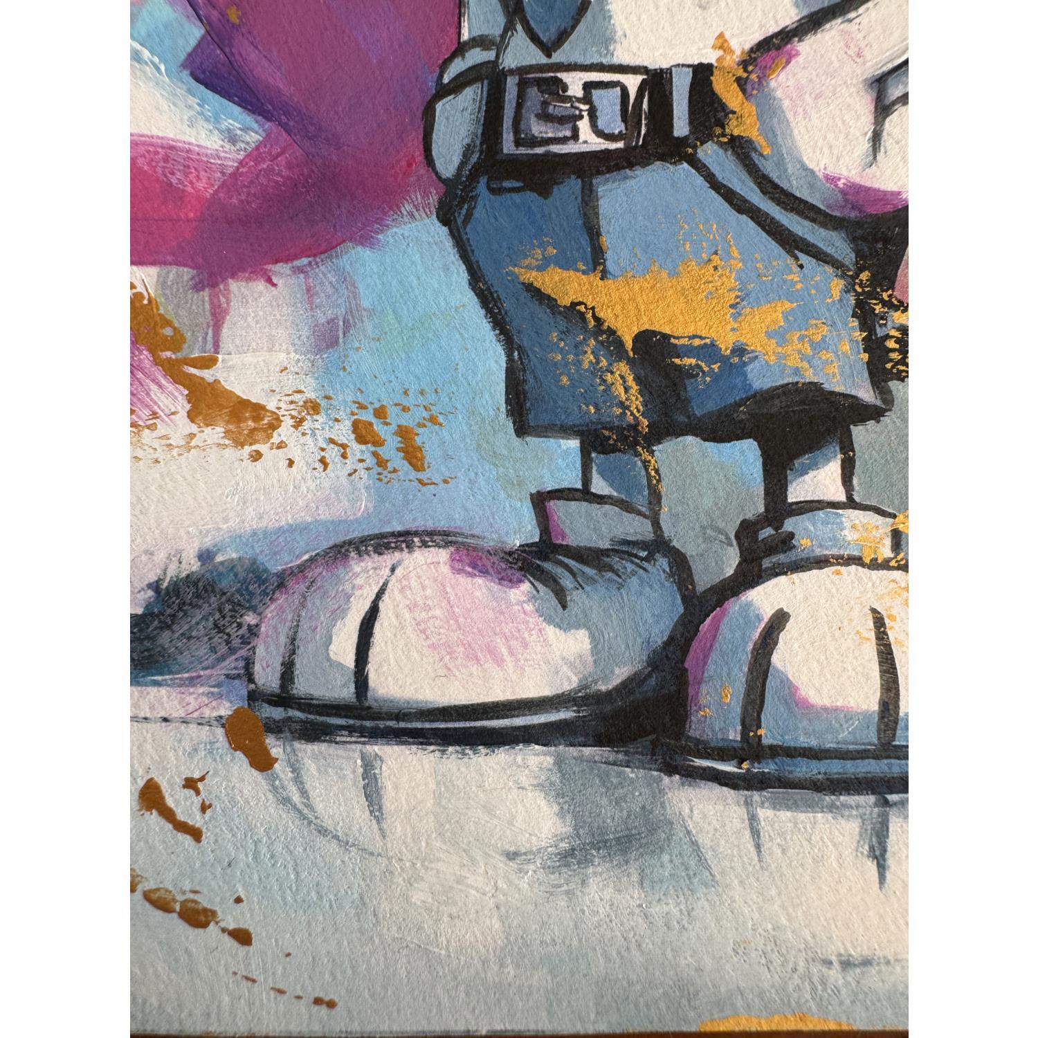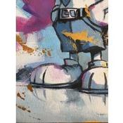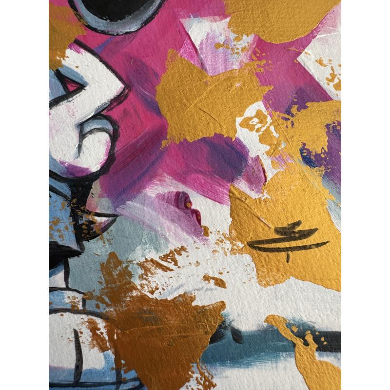 The artist used Acrylic, Gluing media on Paper to create this Pop-art, Small size painting.