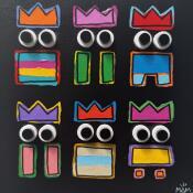 This unique and original contemporary artwork "6 POTOS" on the subjects of Pop icons, Minimalist has been created by the contemporary artist Mam.