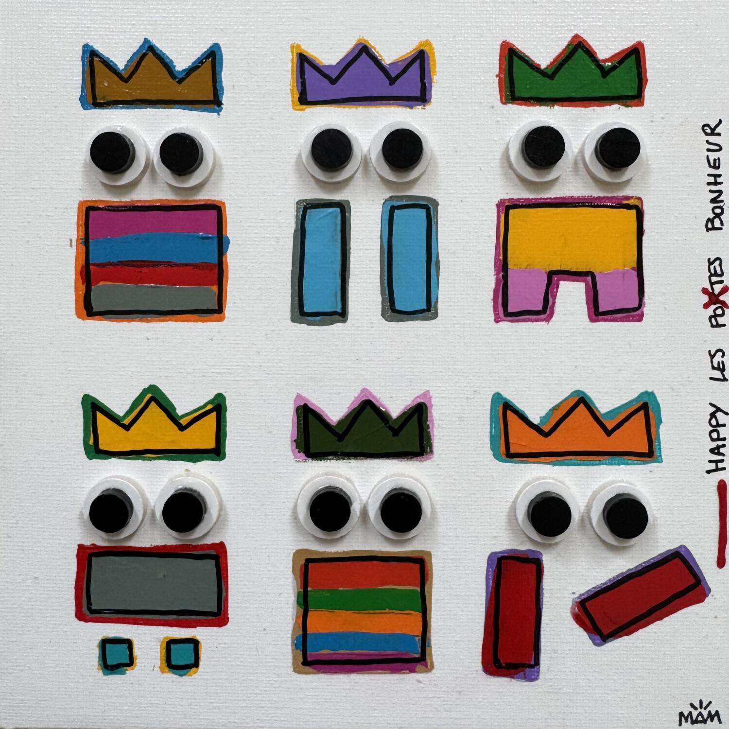 This unique and original contemporary artwork "HAPPY TRIBU" on the subjects of Pop icons, Minimalist, Society has been created by the contemporary artist Mam.