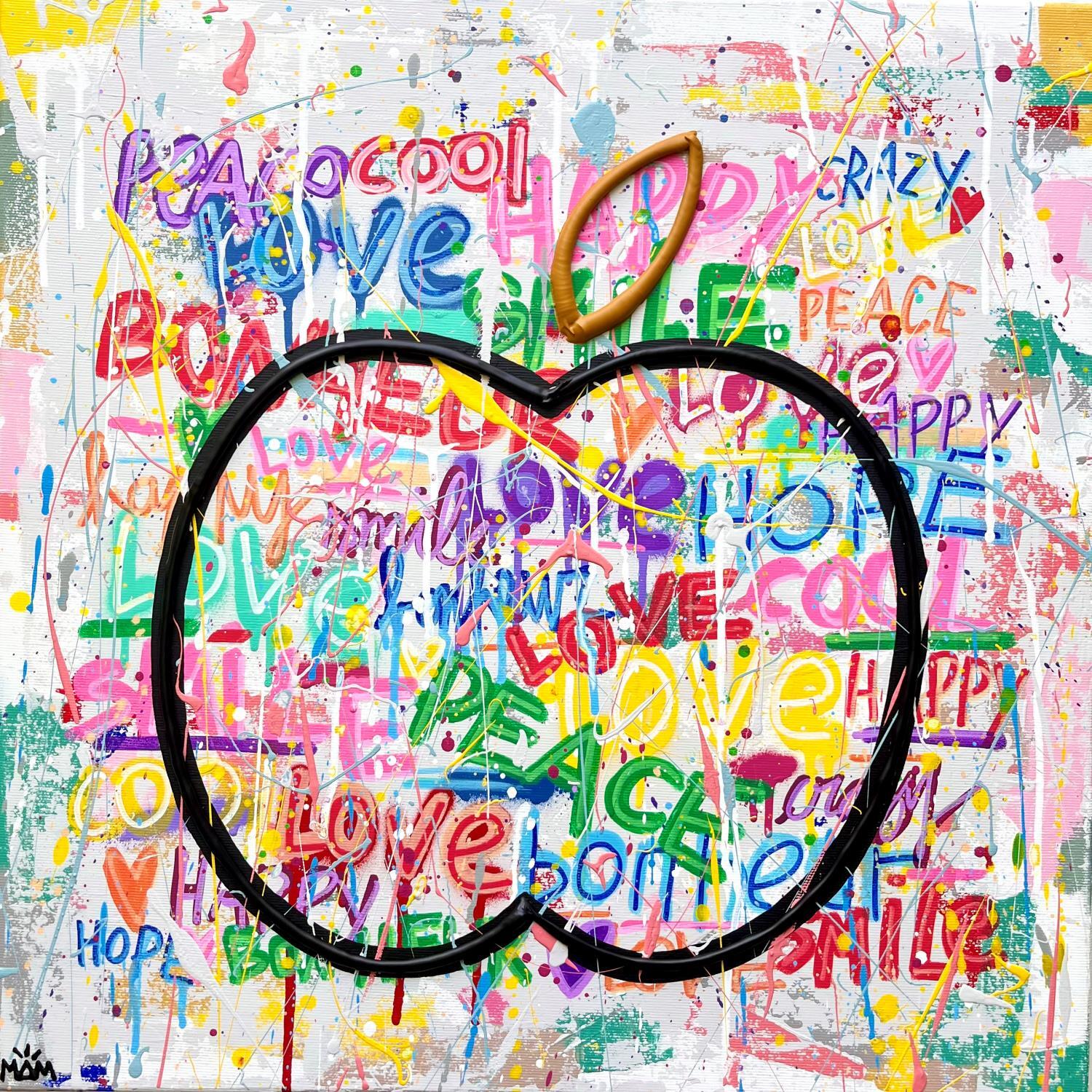 This unique and original contemporary artwork "POMME D'AMOUR" on the subjects of Pop icons, Nature, Still-life has been created by the contemporary artist Mam.