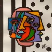 Her art comes to life on a variety of supports such as aluminum, Plexiglas and canvas, or through sculptures she fashions herself in plaster clay and sometimes bronze.