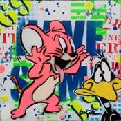 This unique and original contemporary artwork " MOUSE AND DUCK" on the subject of Pop icons has been created by the contemporary artist Euger Philippe.
