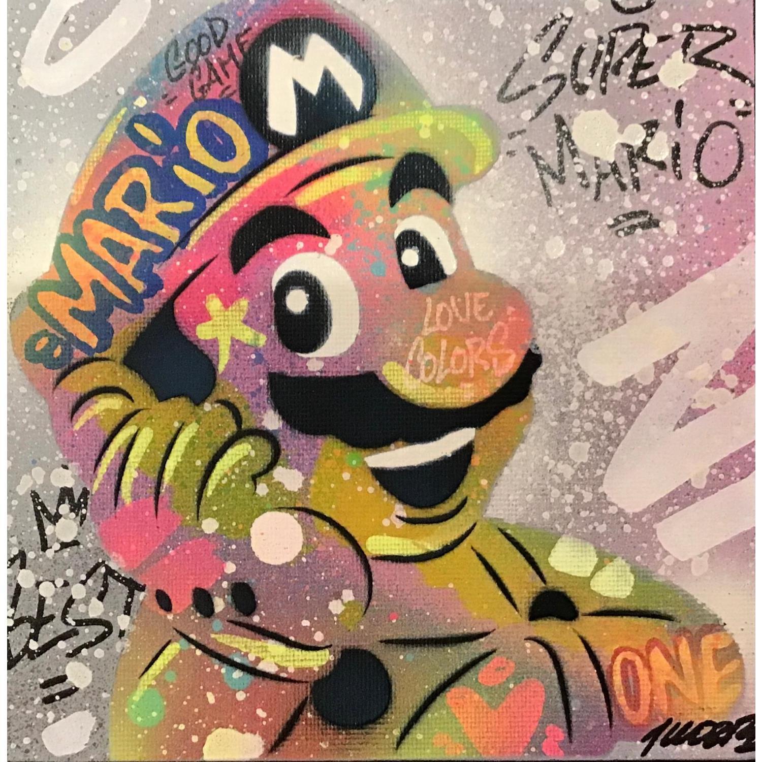 This unique and original contemporary artwork "Mario" on the subject of Pop icons has been created by the contemporary artist Lemoine Mael.