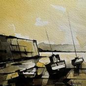 This unique and original contemporary artwork "BATEAUX DANS LE PORT" has been created by the contemporary artist Langlois Jean-Luc.