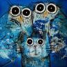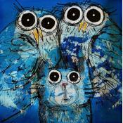 This unique and original contemporary artwork "minou et les deux chouettes" on the subject of Animals has been created by the contemporary artist Maury Hervé.