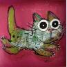 This unique and original contemporary artwork "Un chat vert…" on the subject of Animals has been created by the contemporary artist Maury Hervé.