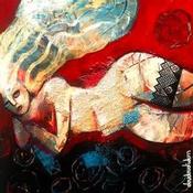 The Breton Loic Tarin, aka Doudoudidon, passed the baccalaureate, then a degree in advertising graphic design. He started off creating images and illustrations, and more recently it clicked into place for him that he should start an artistic life. Influenced by his often technical and scientific readings and listening, he has long wondered about the layout of the universe, Darwinian theories, human sciences… Considering that "he knows nothing", he creates poetic, expressive and intuitive "paintings" (for him painting his first and foremost silent poetry). The idea of distortion of media is the basis of his artistic practice. He likes to use what is initially recyclable waste. He also likes to distort objects like playing cards with themes inspired by the Middle Ages.