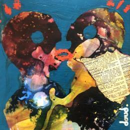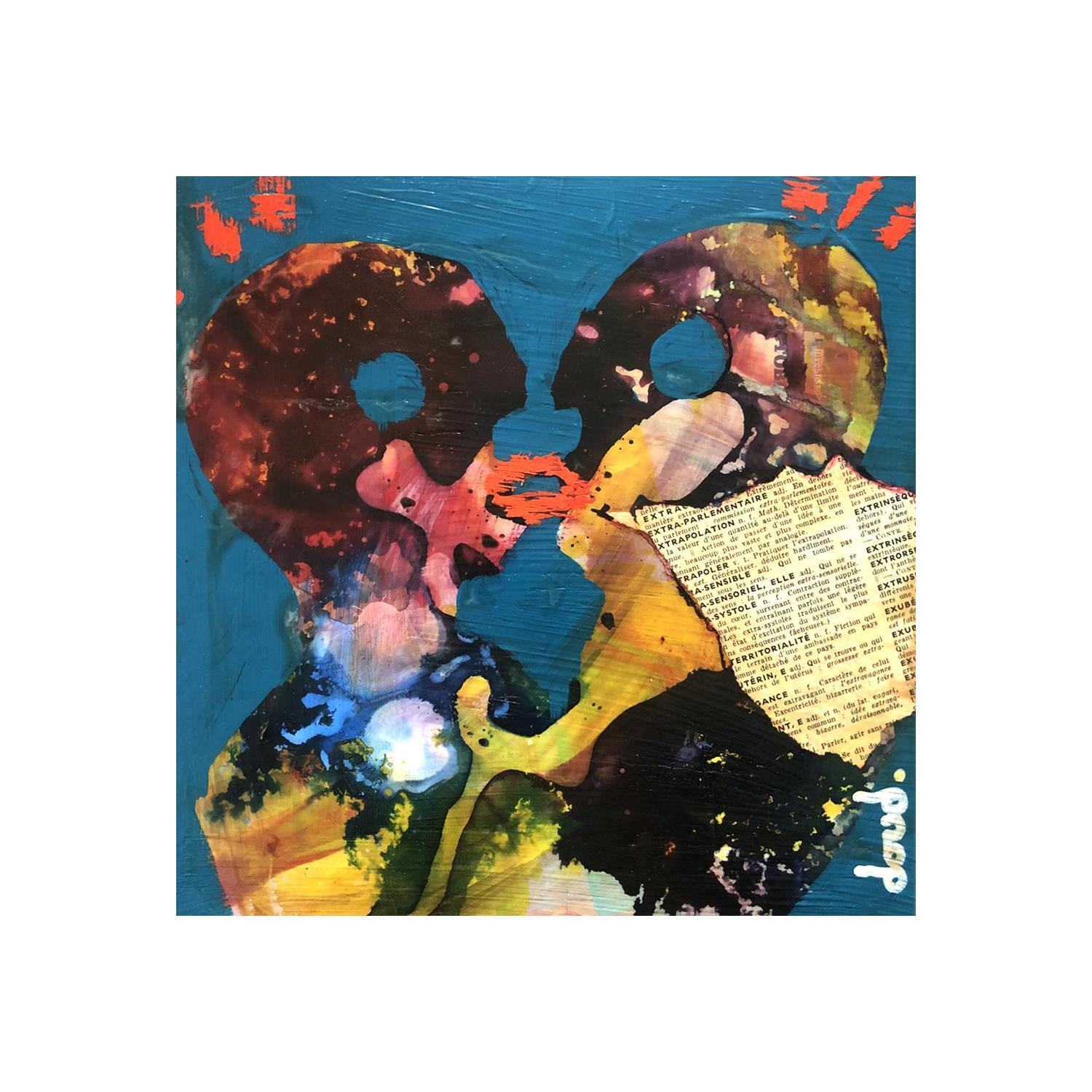 The Breton Loic Tarin, aka Doudoudidon, passed the baccalaureate, then a degree in advertising graphic design. He started off creating images and illustrations, and more recently it clicked into place for him that he should start an artistic life. Influenced by his often technical and scientific readings and listening, he has long wondered about the layout of the universe, Darwinian theories, human sciences… Considering that "he knows nothing", he creates poetic, expressive and intuitive "paintings" (for him painting his first and foremost silent poetry). The idea of distortion of media is the basis of his artistic practice. He likes to use what is initially recyclable waste. He also likes to distort objects like playing cards with themes inspired by the Middle Ages.