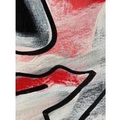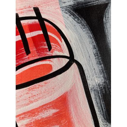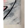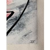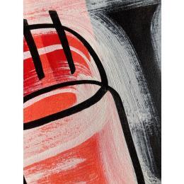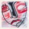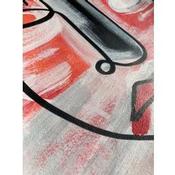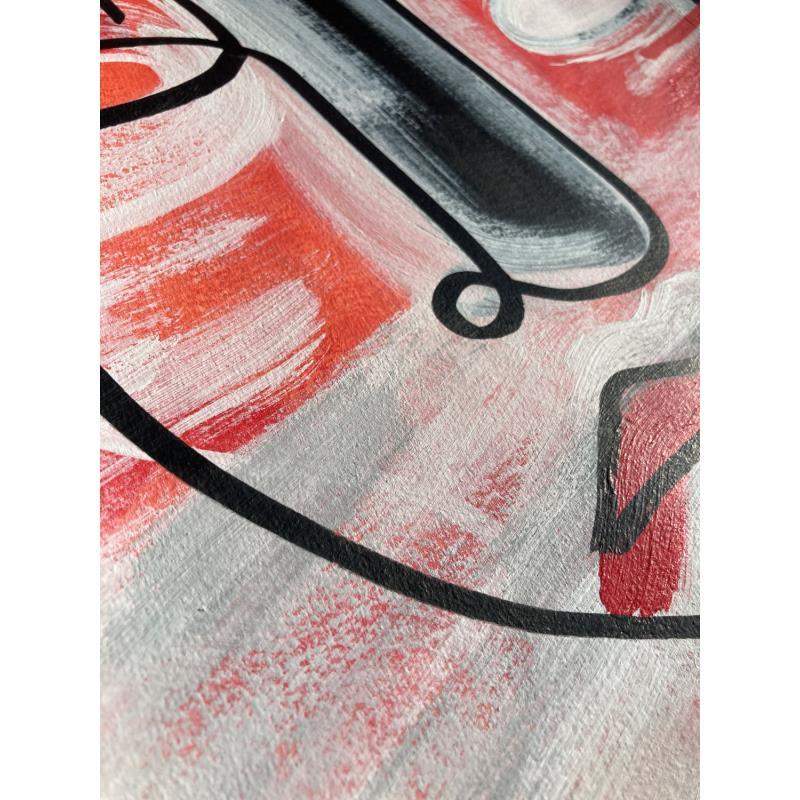 In this unique and original work of art, we can see a face slightly tilted to the left, made with a single continuous line, with a red, orange background and a white mist giving a little mystery.