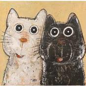 This unique and original contemporary artwork "Chat noir / Chat blanc" on the subject of Animals has been created by the contemporary artist Maury Hervé.