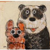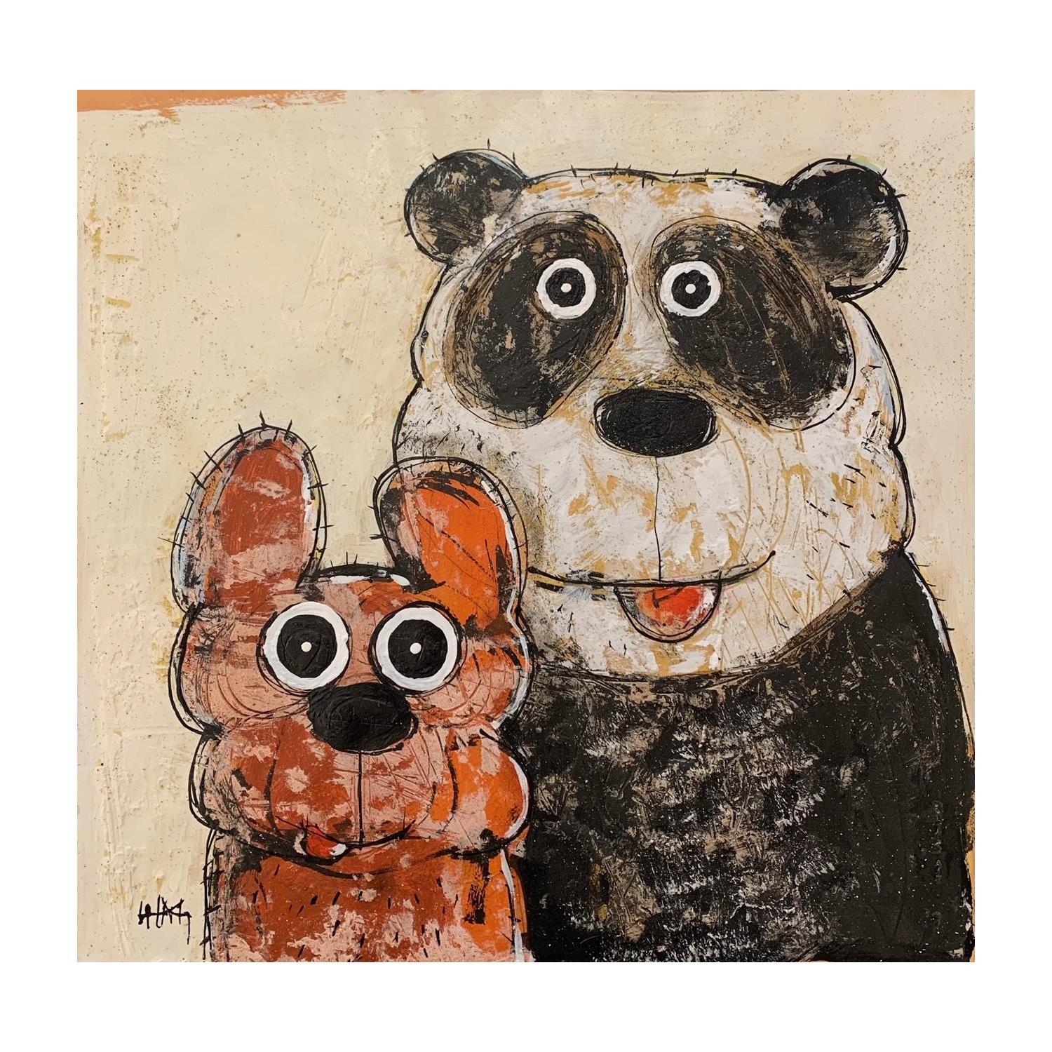This unique and original contemporary artwork "Chien et panda" on the subject of Animals has been created by the contemporary artist Maury Hervé.