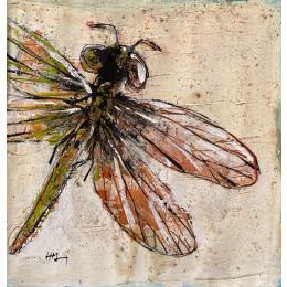 This unique and original contemporary artwork "Green Dragonfly" on the subject of Animals has been created by the contemporary artist Maury Hervé.