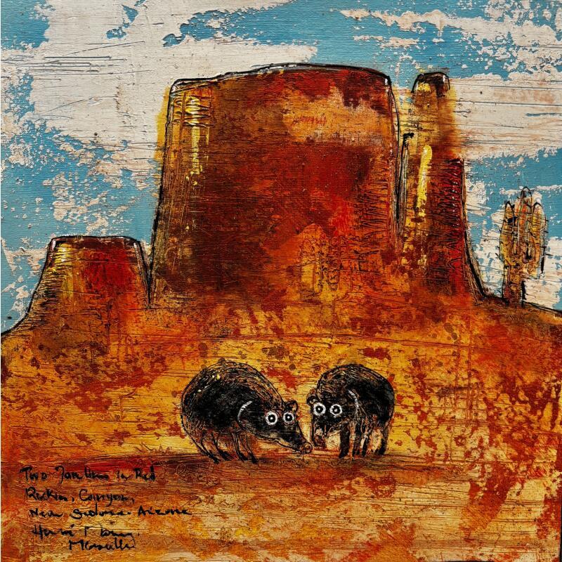 This unique and original contemporary artwork "Javelina in the Red Rocks of Sedona" on the subject of Animals has been created by the contemporary artist Maury Hervé.