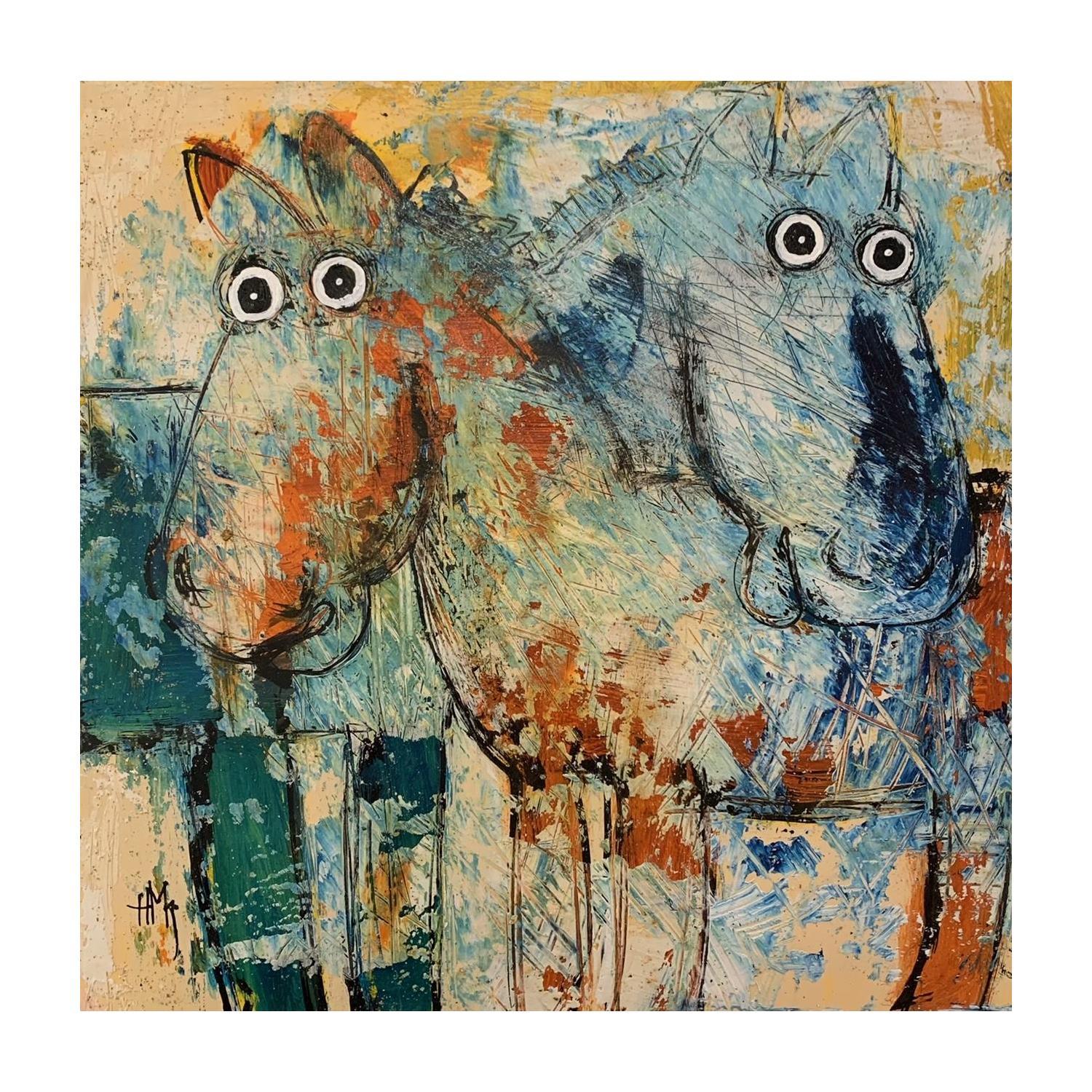 This unique and original contemporary artwork "Les 2 chevaux" on the subject of Animals has been created by the contemporary artist Maury Hervé.