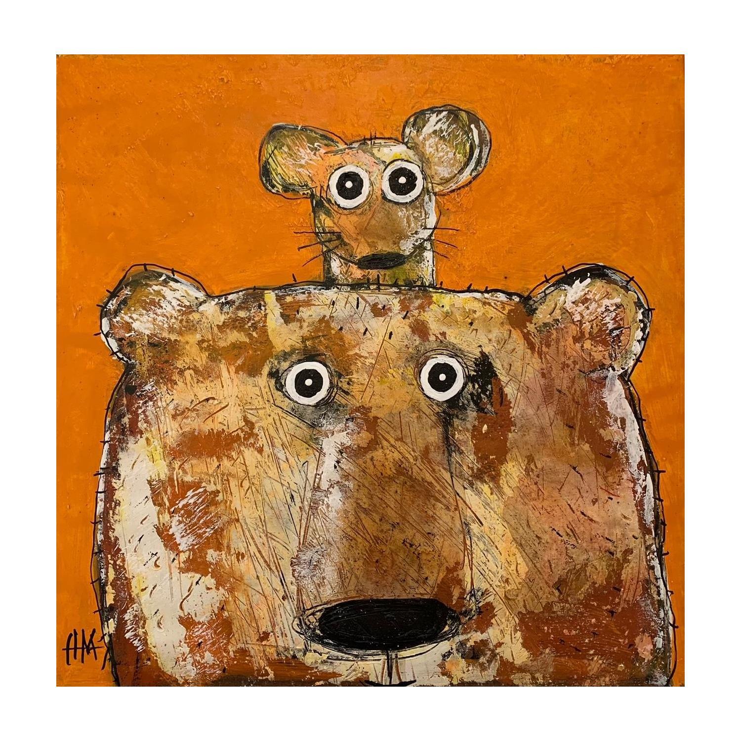 This unique and original contemporary artwork "Souris sur l'ours" on the subject of Animals has been created by the contemporary artist Maury Hervé.