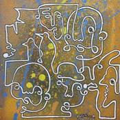 This unique and original contemporary artwork "Orange Oneline" on the subject of Minimalist has been created by the contemporary artist Oocalme.