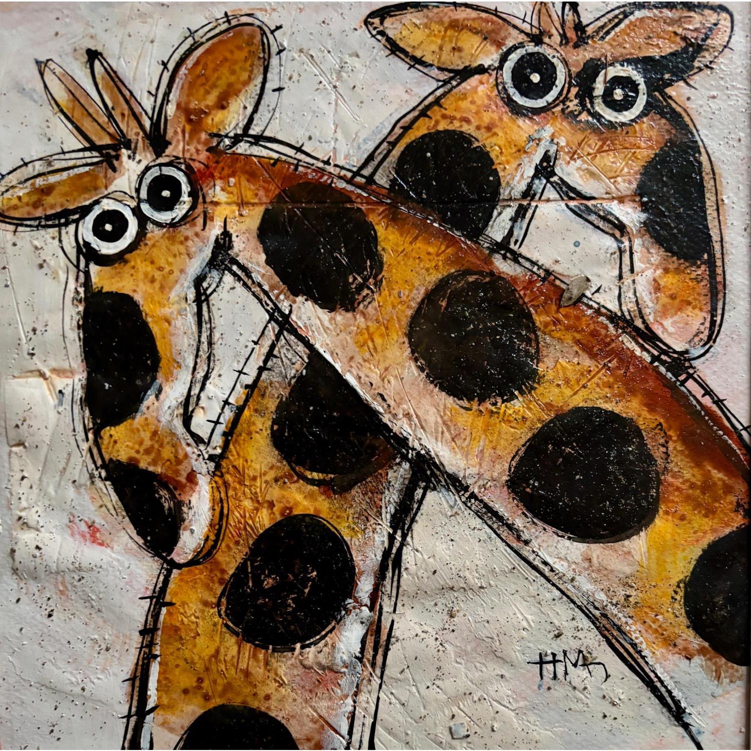 This unique and original contemporary artwork "Two Giraffes" on the subject of Animals has been created by the contemporary artist Maury Hervé.