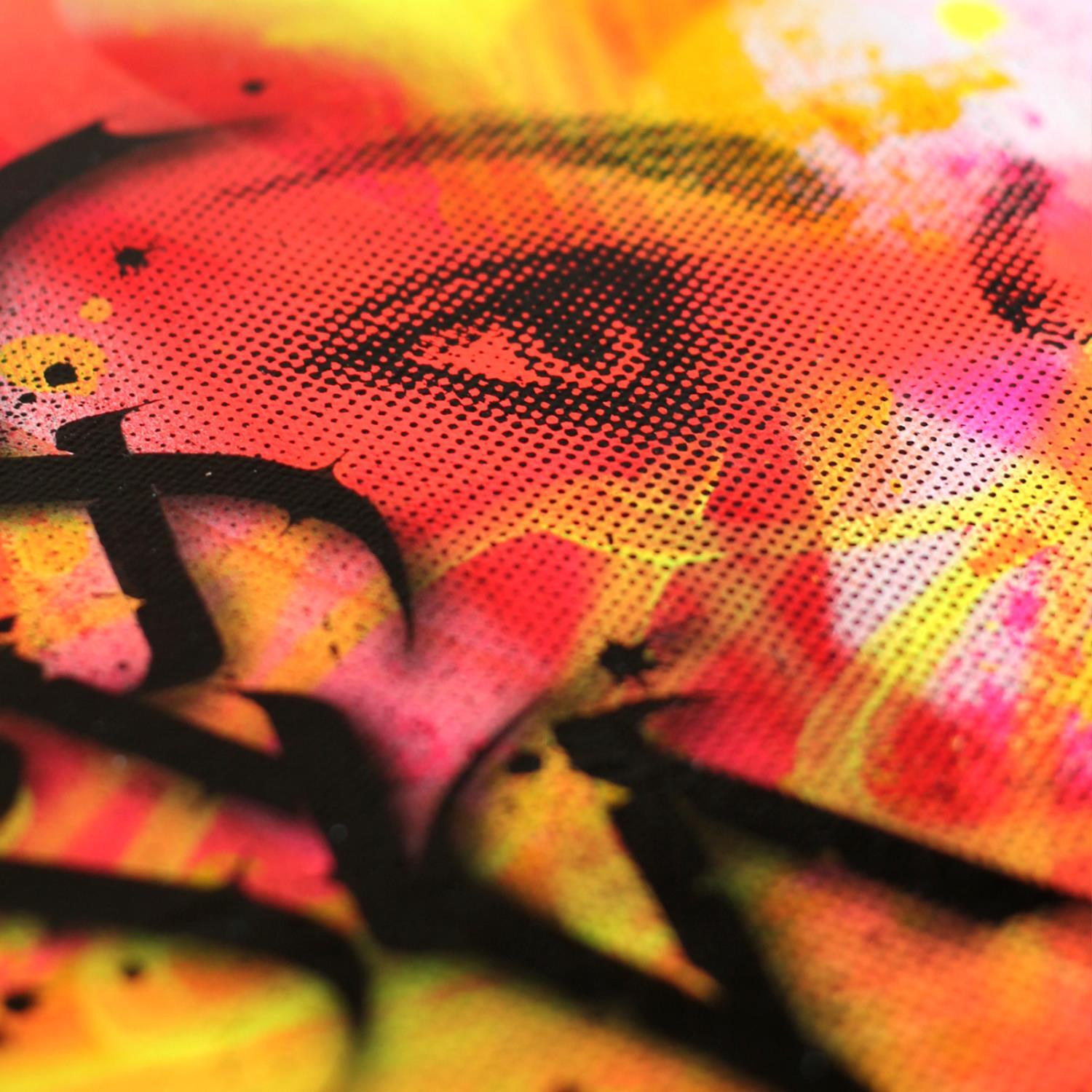 He discovered graffiti and began to paint on the walls, a practice that appealed to him because of its spontaneity and that would never cease to inspire him. Whether through graffiti or calligraphy, Maderno seeks to express himself freely. Driven by a desire to diversify and surpass himself, his works mix abstract painting, calligraphy and portraiture. Just as we find a certain sensuality in the curves of his letters, we find a certain sensitivity in the features of his subjects.