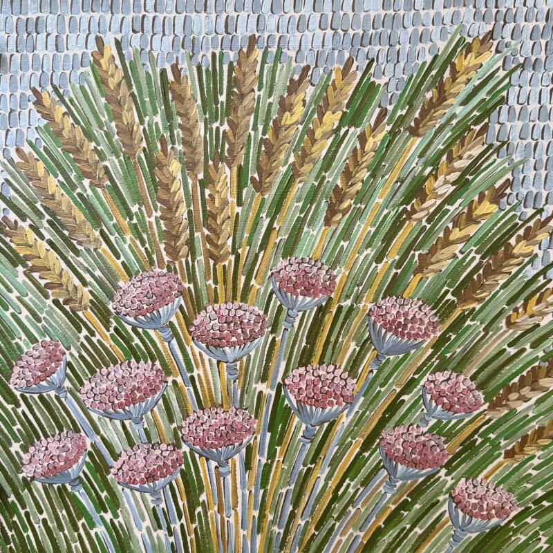 Daria Dmitrieva is an artist trained in the fine arts in Russia, specializing in textile design and tapestry techniques. Her works, often compared to embroideries, are characterized by meticulous attention to detail and nuance. Inspired by nature in all its forms, she seeks to convey emotions of happiness, harmony and tranquility through her creations. Daria adopts a technique akin to pointillism, using small strokes to capture the ephemeral beauty of landscapes and plants.