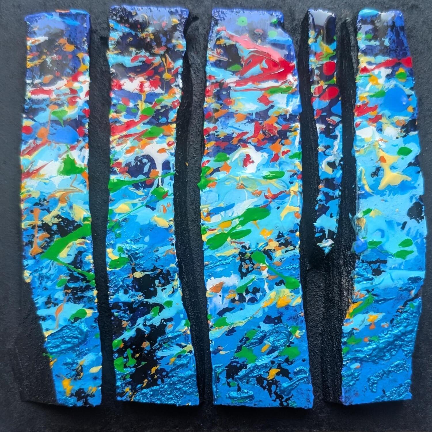 The artist used Acrylic, Wood, Resin media on Wood to create this Subject matter, Small size painting.