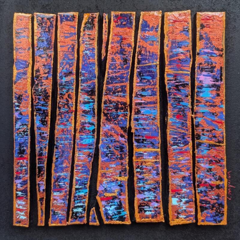 The artist used Acrylic, Wood, Resin media on Wood to create this Subject matter, Small size painting.