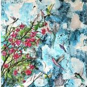 This unique and original contemporary artwork "Oiseaux Mouches (Hummingbirds)" has been created by the contemporary artist Geiry.