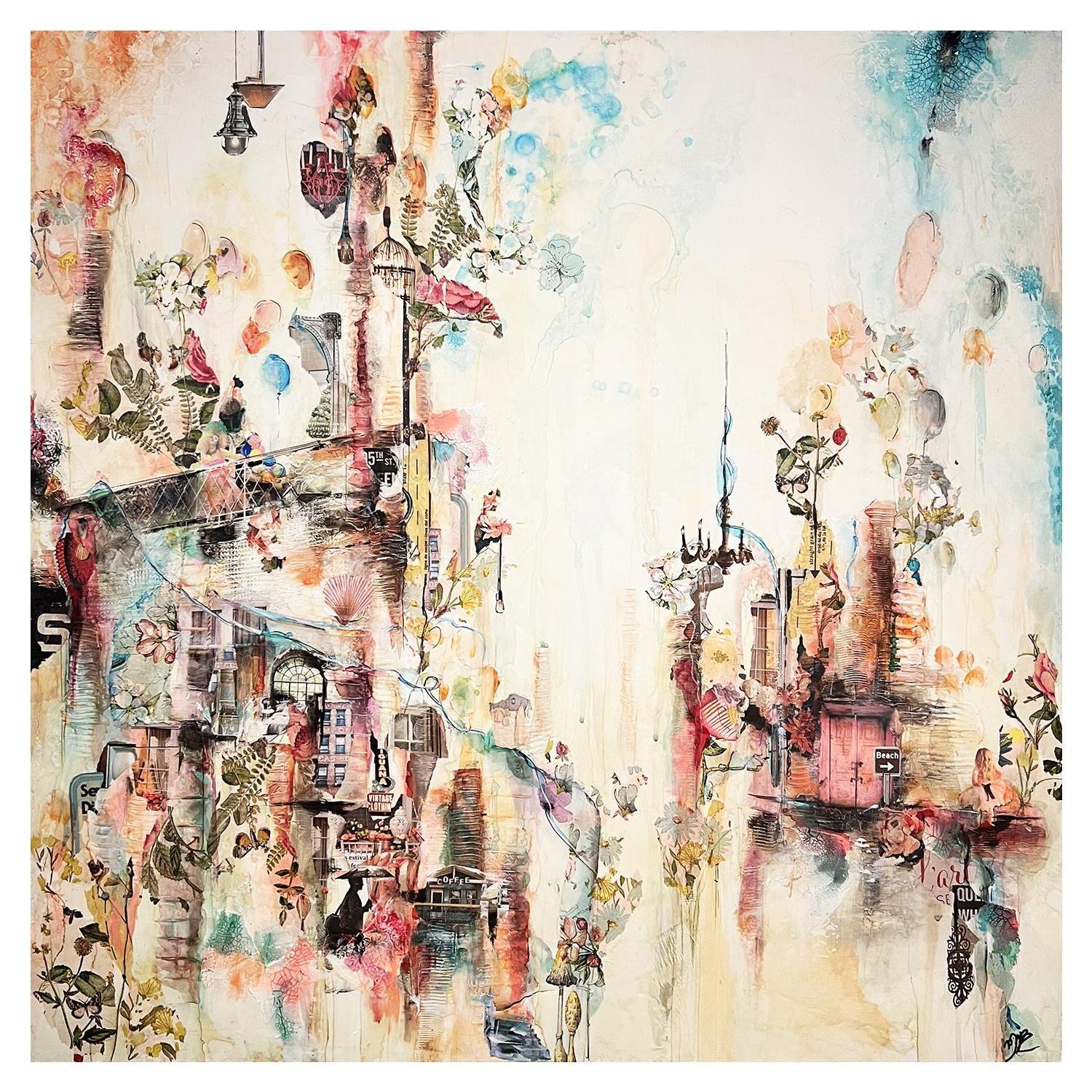 The artist used Acrylic, Gluing, Oil media on Paper to create this Surrealism, Large size painting.