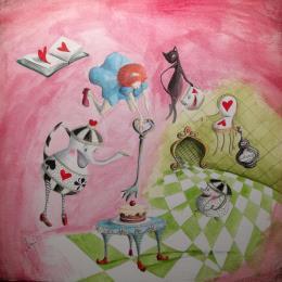 This unique and original contemporary artwork "Alice e il cuore che prende il volo" has been created by the contemporary artist Nai.
