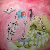 Alice e il cuore che prende il voloPainting Alice e il cuore che prende il volo by Nai | Painting Surrealism Acrylic Gluing