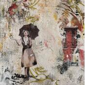 The artist used Acrylic, Gluing, Oil media on Paper to create this Surrealism, Small size painting.