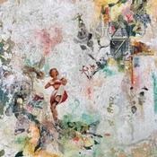 The artist used Oil, Acrylic, Gluing media on Paper to create this Surrealism, Small size painting.