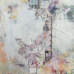 This unique and original contemporary artwork "Scaling New Heights" was created by contemporary artist Bergeron Marie-Josée.