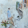 The artist used mixed media and acrylic paint: collage, textures, paper, felt-tip pens, posca and other mediums to create this small-format painting on canvas in a style that is both abstract and surreal.