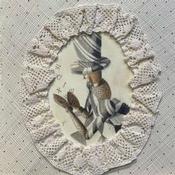 The artist used Textile, Watercolor media on Paper to create this Surrealism, Small size painting.