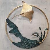 This unique and original contemporary artwork "raie murale à l'algue bleue" on the subject of Animals has been created by the contemporary artist Eres Nicolas.