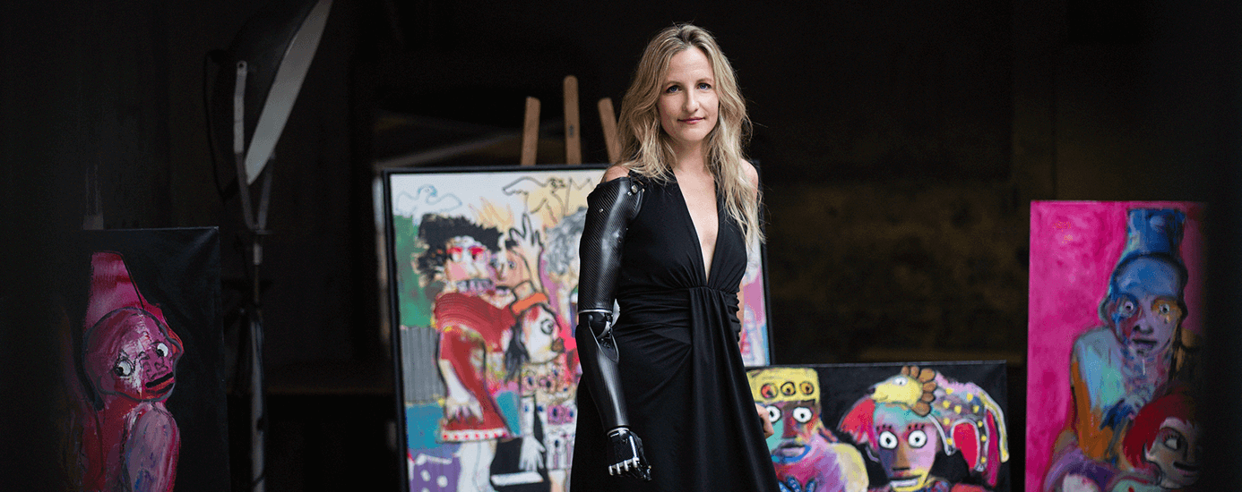 I am the first woman in France to have benefited from this arm prothesis, which is guided through thought, and it has been present in USA for the past twenty years. “Bionic” means “controlled by the brain”. It’s symbolic: if one tells our brain “I can do it”, it is going to happen. Each one of us can control our brain. The expression “bionic woman” also talks about my resilient journey. If I was able to re-build myself the way I am today, it means that I was able to confront this rather crazy situation of being an amputated woman and at the end of the day, I managed to build a life where I feel accomplished, where I achieved my dream of turning into a professional painter. Despite my handicap, I was able to have a daughter. Fear is our biggest enemy! People prevent themselves from heading towards their dream while it’s possible. This message is for everyone. Anything is possible as long as one wants it; we are the only actor of our life. We are the only ones who can make things happen.
