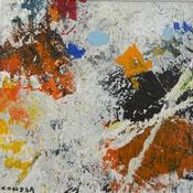 The artist used Acrylic, Charcoal media on Canvas to create this Abstract, Small size painting.