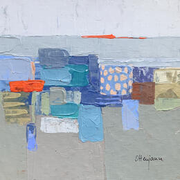 This unique and original contemporary artwork "F2 Happy by the Sea 2 403-21321-20260120-17" was created by contemporary artist Ottenjann Andrea. The artist used acrylic paint to create this small-format painting on paper in an abstract style.