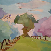 Le soir tombant sur les oliviersPainting Le soir tombant sur les oliviers by PAPAIL | Painting Abstract Landscapes Oil