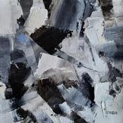 The artist used Oil medium on Canvas to create this Abstract, Small size painting.