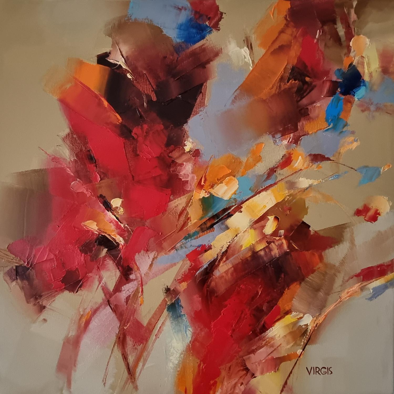 The artist used Oil medium on Canvas to create this Abstract, Large size painting.