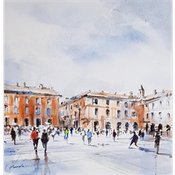 This unique and original contemporary artwork "Place du capitole Toulouse" on the subjects of Life style, Urban has been created by the contemporary artist Poumelin Richard.