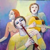 AQ75 LE TRIOPainting AQ75 LE TRIO by Burgi Roger | Painting Figurative Music Life style Acrylic