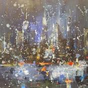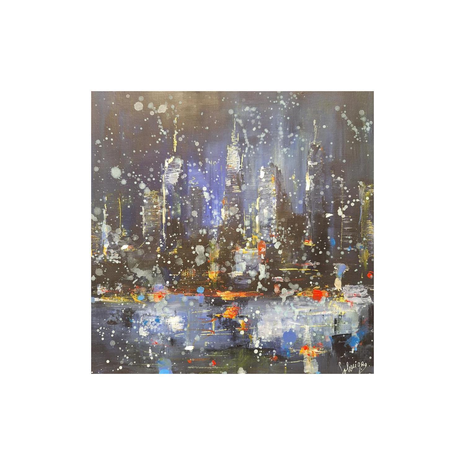 This unique and original contemporary artwork "Night 1" on the subject of Urban has been created by the contemporary artist Solveiga.