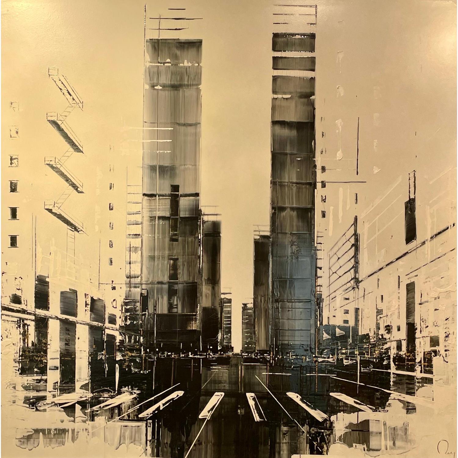 Although he has achromatopsia (absence of color vision), Julien Rey takes us on a journey through his paintings to urban landscapes. Julien Rey's story begins like all great stories: with an impossible dream. With achromatopsia, the artist sees only in black and white. Yet, this condition did not prevent him from traveling to the borders of Burma, from changing his life (he became a Buddhist monk there) or from embarking on art. From his trip to Burma, he brought back a perfect mastery of gold leaf, a characteristic element of his work. His technique based on lacquer worked with a knife and gold leaf inlays places light at the center of his works. Marked by Zen philosophy, he creates minimal compositions that appear as suspended moments, poetic pauses.