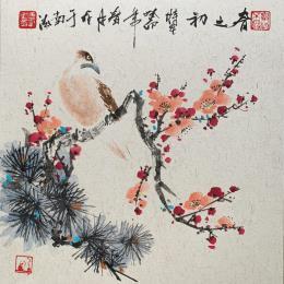 This unique and original contemporary artwork "Song of early spring" on the subject of Nature has been created by the contemporary artist Yu Huan Huan.